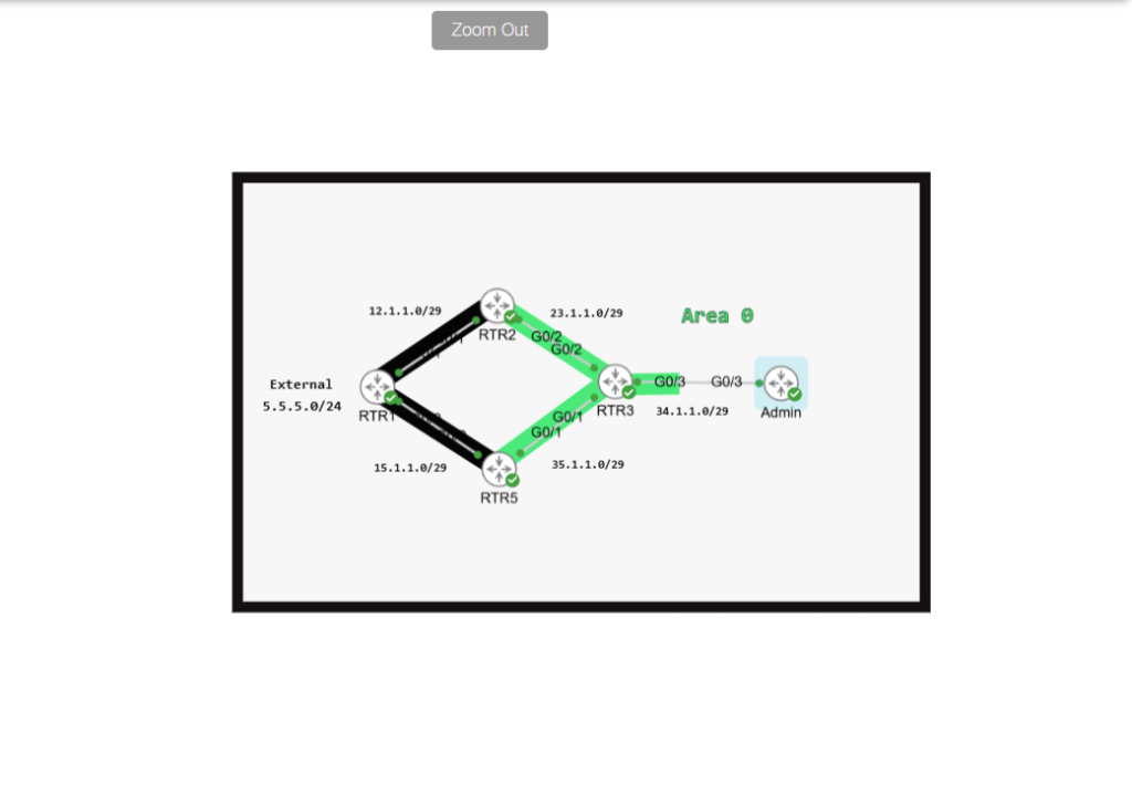 Traffic from the Admin PC is traversing the path via RTR2. It should be traversing the path via RTR5. Implement a solution to ensure traffic flows via RTR5.