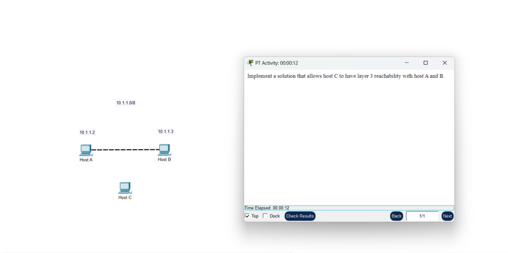 Implement a solution that allows host C to have layer 3 reachability with host A and B.